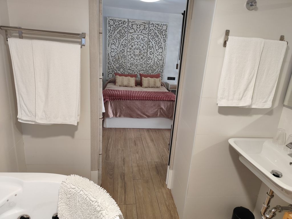 El apartamento cuenta con 1 dormitorio con cama doble, una sala de estar con sofá cama para 2 personas, 1 baño con bañera hidromasaje para 2 personas, ropa de cama, toallas, TV de pantalla plana, zona de comedor, cocina totalmente equipada y patio privado.